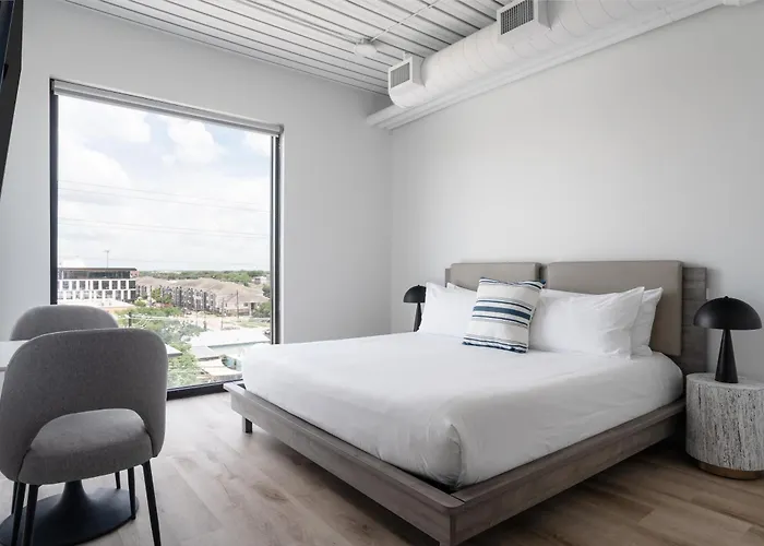As opções de quartos disponíveis em hotel de Austin incluem Estúdio deluxe com cama queen, Quarto com cama queen e Estúdio premier com cama king.